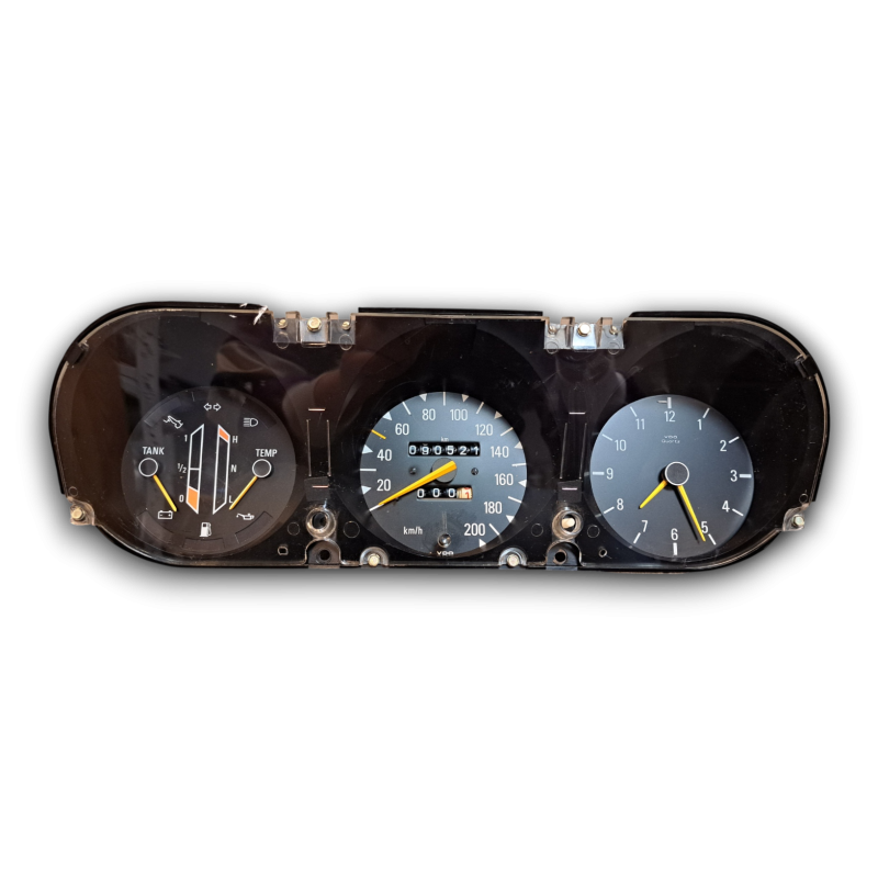 Taggar: Saab 99, Kombinerat Instrument, Instrumentpanel, Hastighetsmätare, Bränslemätare, Temperaturmätare, Analog Klocka, Originaldel, Begagnad